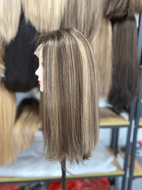 Lace wig or a lace front wig is a special type of hairpiece or wig in which human hair or synthetic hair is tied by hand to a sheer lace base which goes over the scalp.